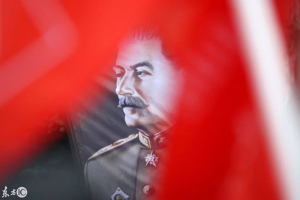 2017年11月6日,俄罗斯RYAZAN,一名男子手持约瑟夫·斯大林的肖像。