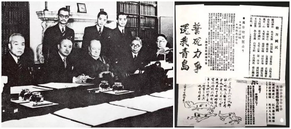 1919年,第一次世界大战战胜国在法国巴黎召开所谓的“和平会议”,中国作为第一次世界大战协约国之一,参加了会议。英、美、法、日、意等国不顾中国民众呼声,签订《凡尔赛和约》,将德国在山东的权利转送日本。中国政府的外交失败,直接引发了中国民众的强烈不满,从而引发了五四运动。
