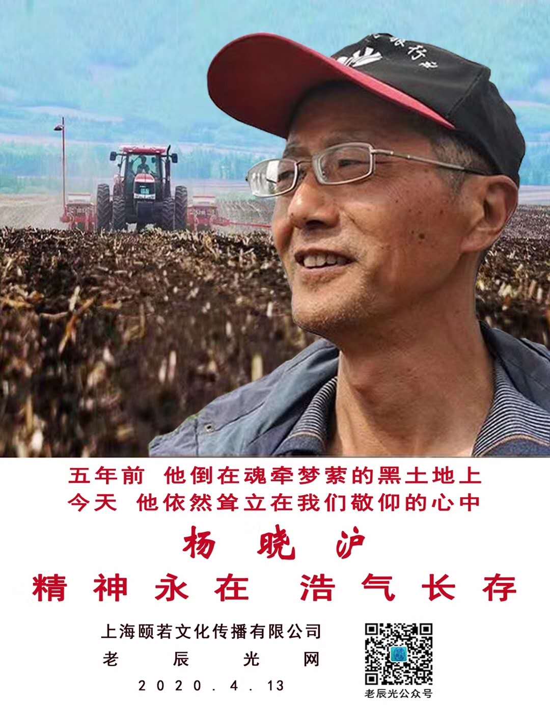 2020年4月13日是杨晓沪去世5周年忌辰,老辰光的同仁们,黑土情的同仁们都很怀念他。他在我们心中,他在北大荒人的歌中,他在北大荒温暖的怀抱中。安息吧,晓沪!