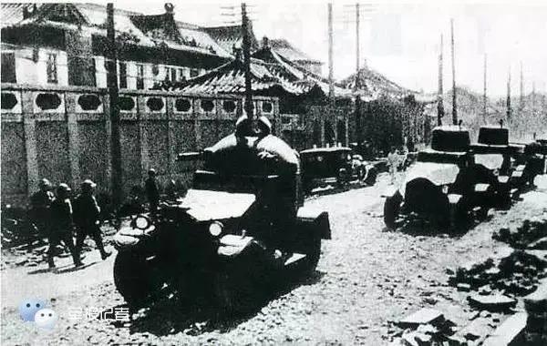日军19日占领沈阳。图为日军装甲车开进沈阳。