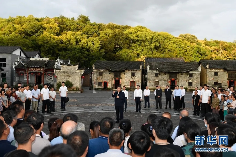 2020年9月16日至18日,中共中央总书记、国家主席、中央军委主席习近平在湖南考察。这是16日下午,习近平在郴州市汝城县文明瑶族乡沙洲瑶族村,同村民和游客们亲切交流。