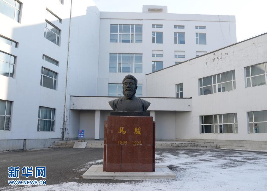 吉林市第一中学校内的马骏雕塑(1月14日摄)。新华社记者 徐子恒 摄
