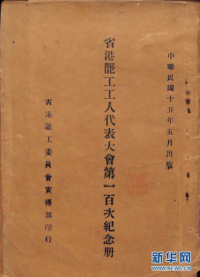 《省港罢工工人代表大会第一百次纪念册》(资料照片)。新华社发