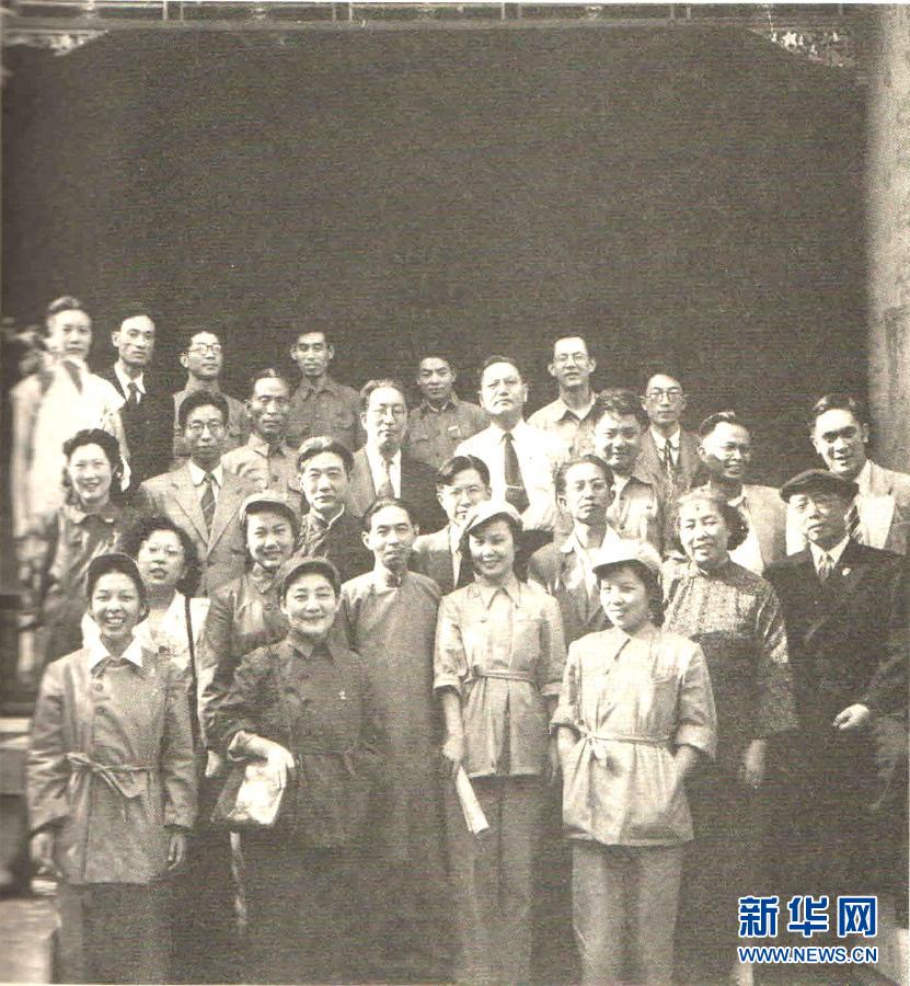 第一批到达东江游击区的文化人士合影(资料照片)。新华社发
