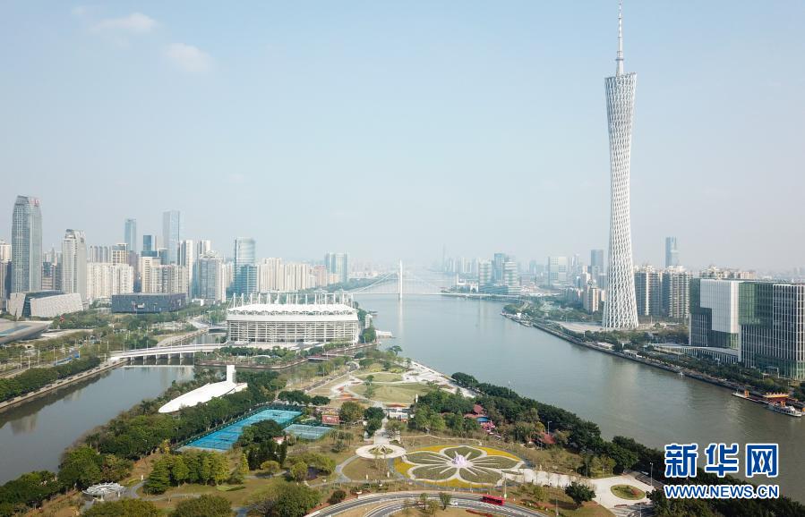 广州珠江两岸景观(2019年3月3日摄,无人机照片)。新华社记者 邓华 摄
