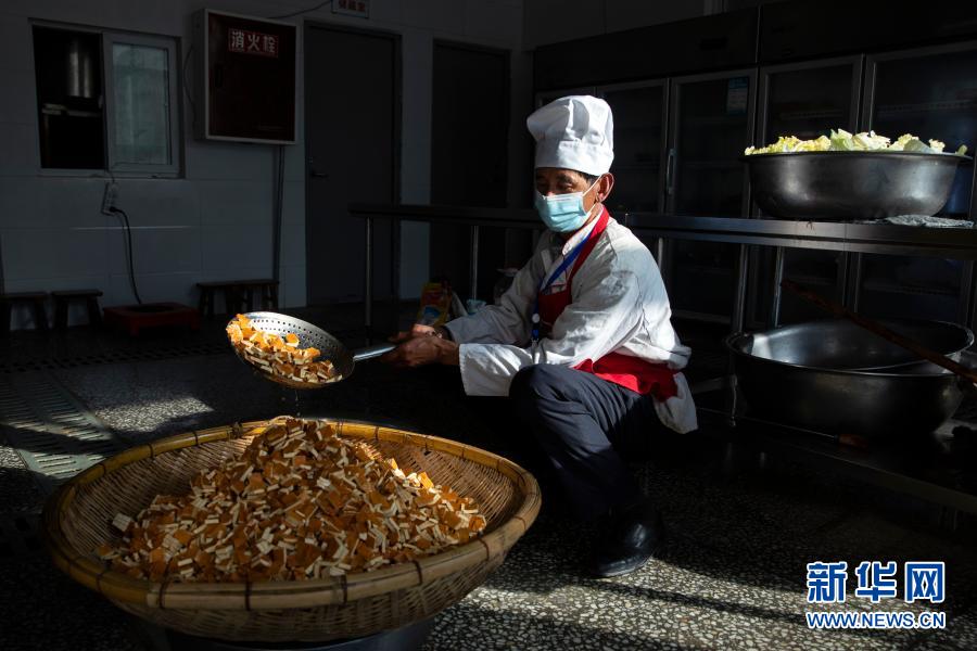 在四川省凉山彝族自治州冕宁县彝海小学,在这里当了36年炊事员的沙马克姑在厨房里为学生们准备饭菜(1月14日摄)。新华社记者 沈伯韩 摄