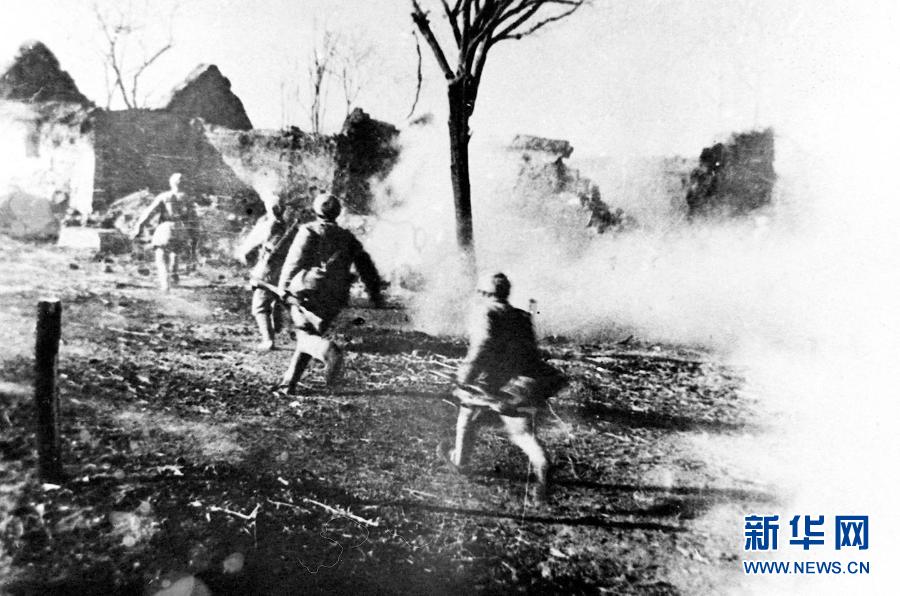 这是在淮海战役中,人民解放军突破浓烟密火,扑向国民党军的指挥所鲁楼(资料照片)。新华社发