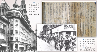 ◆1926年开业的新新公司,其址今为上海市第一食品商店。 《中国人民解放军布告》(又名《约法八章》)也曾在凯旋电台播出。 ◆解放军进入南京路,经过新新公司。 制图:冯晓瑜
