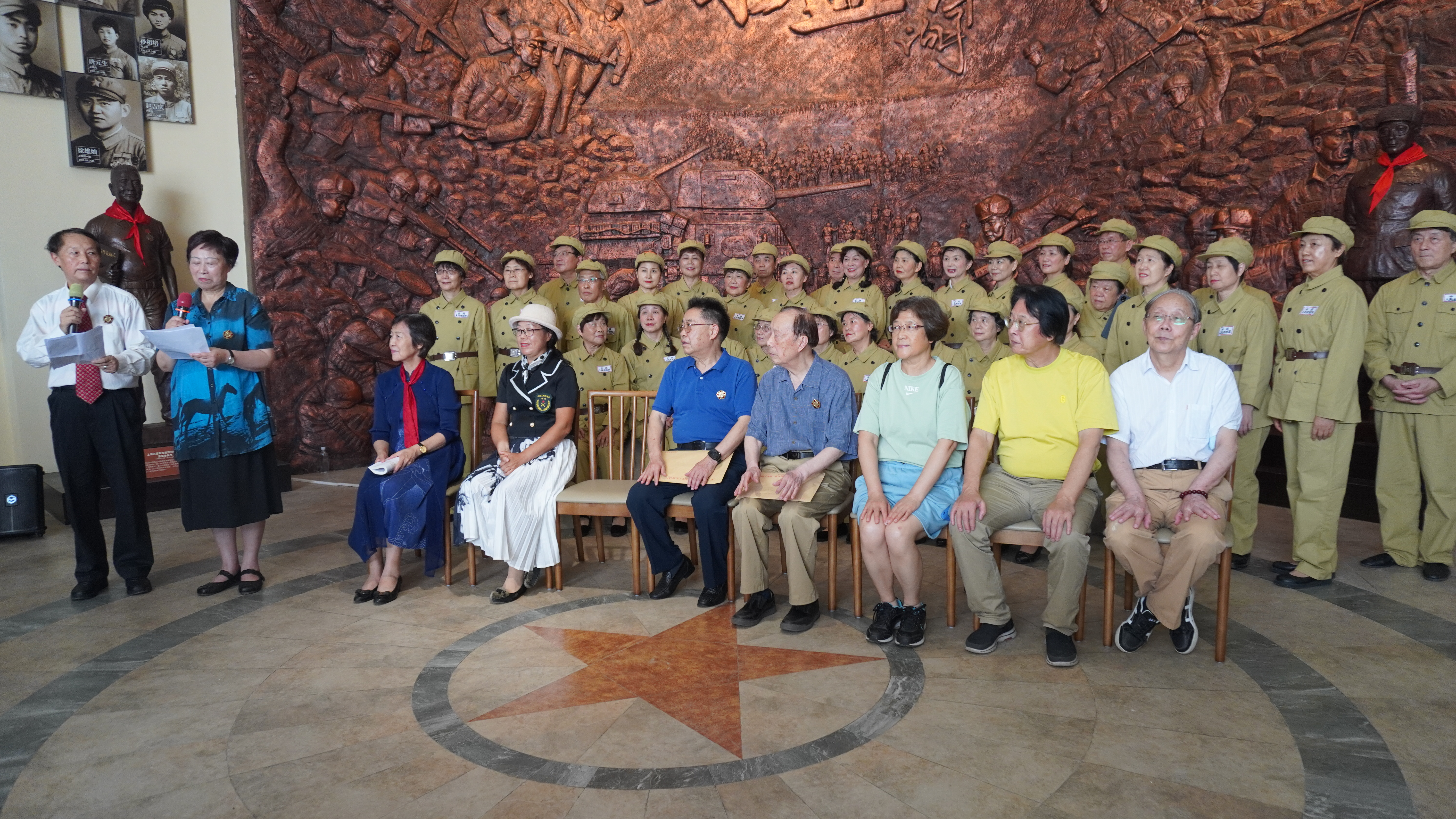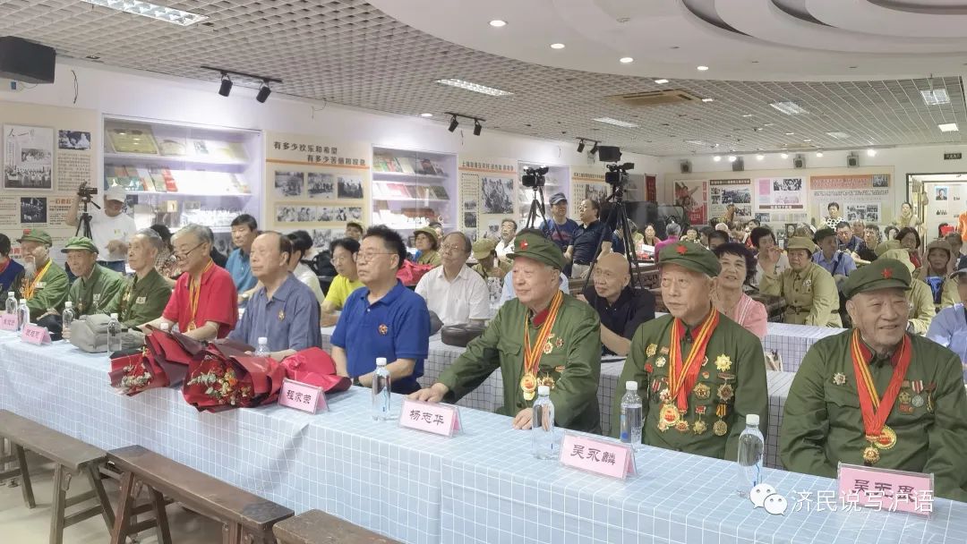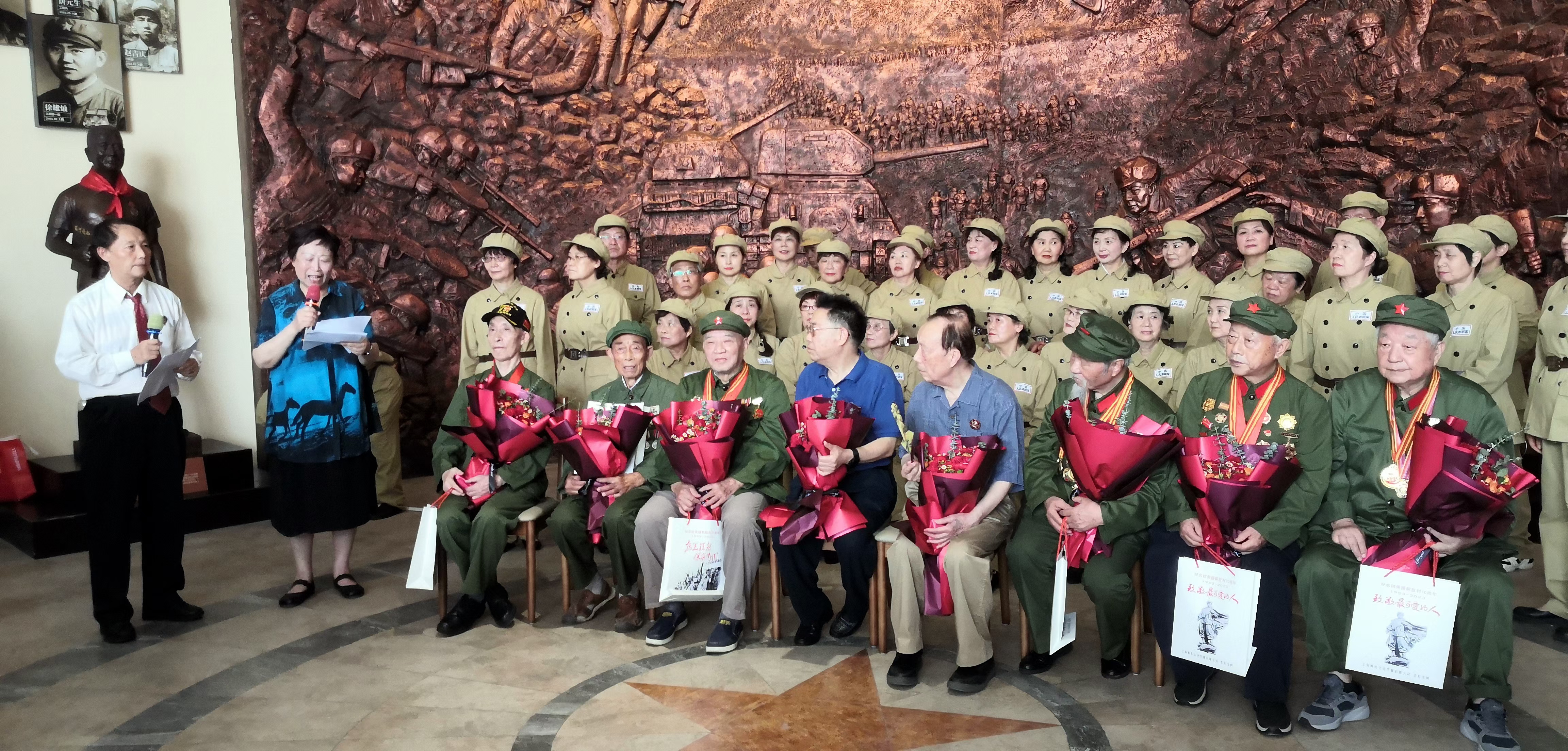 抗美援朝时期的中国人民志愿军老兵代表、志愿军老兵后代、上海知青历史文化研究会代表、上海颐若文化传播有限公司老辰光网成员等一百多人,参加了本次活动。 (主持人李春生和文仪介绍与会领导与嘉宾) 馆内挂满了年轻的志愿军战士的照片。 (文献馆志愿军战士照片墙) 志愿军战士一个个可歌可泣的故事,一段段英勇无畏的事迹如在眼前。他们浴血奋战为国捐躯的精神,使大家重温了七十年前那个炮火硝烟的年代,受到了深刻的爱国主义和国际主义教育。 志愿军老兵和志愿军后代还接受了现场座谈采访和视频采访。 杨馆长(左一)与老兵亲切交谈 首先隆重邀请两位将军和六位志愿军老战士出场。 ![]() 朱俊贤(志愿军23军老战士) 顾祖恩(志愿军老战士) 张建群(志愿军汽十六团政治处摄影记者) 吴永麟(志愿军空军前指后勤书记员) 楊志华(志愿军后勤部二分部車管员) 吴无畏(志愿军砲兵三师十三团侦察员) 少先队员分别向“最可爱的人”敬献鲜花。 范爱珍女士送上纪念章和慰问金(右) 原志愿军坦克兵刘明勤的女儿刘崇玲、原志愿军坦克兵吴维山的女儿吴学先,分别讲述了父辈的亲身经历。 志愿军刘勤明的女儿刘崇玲(左)与志愿军吴维山的女儿吴学先(右)在现场