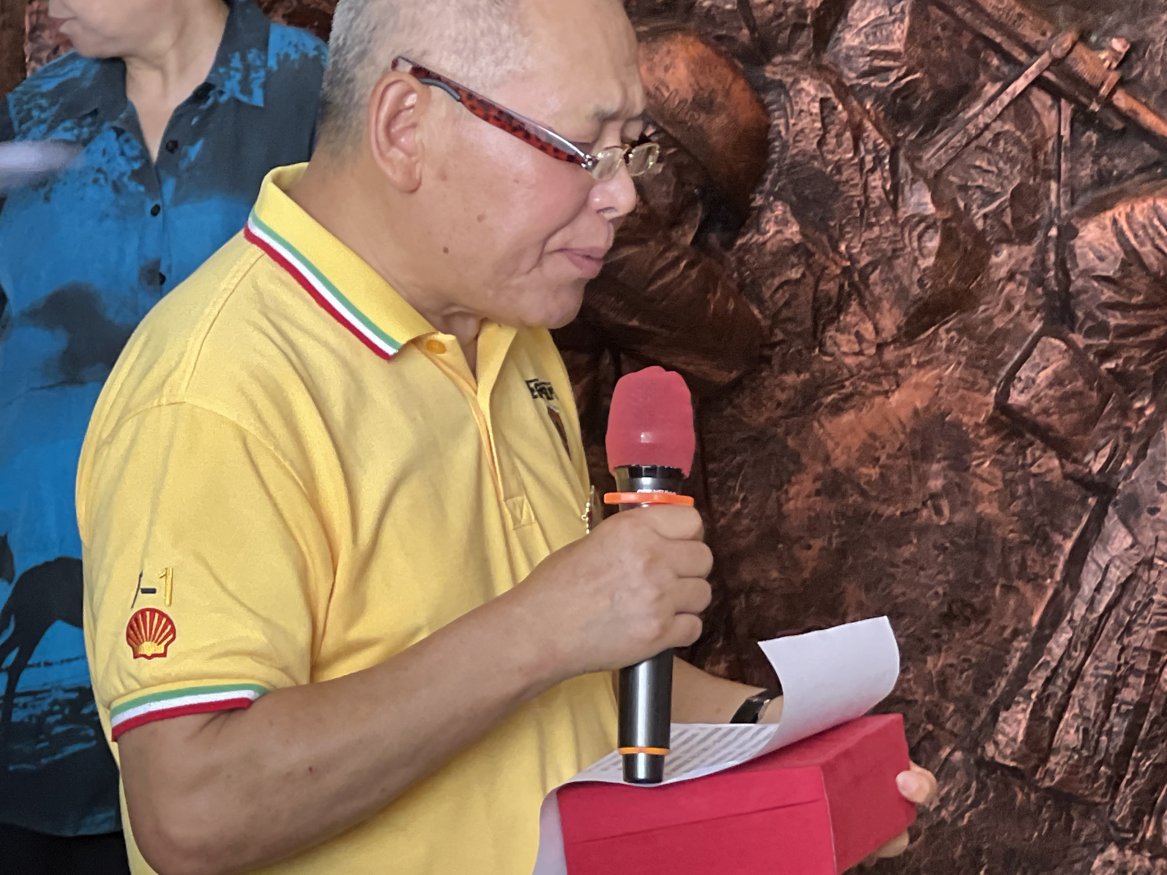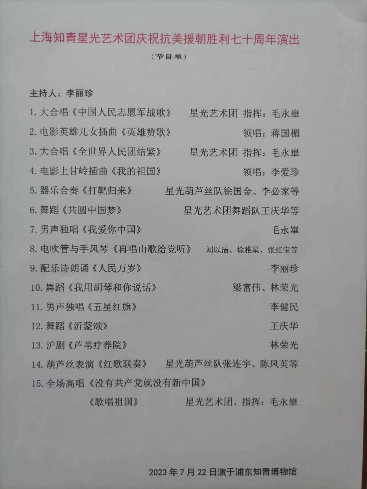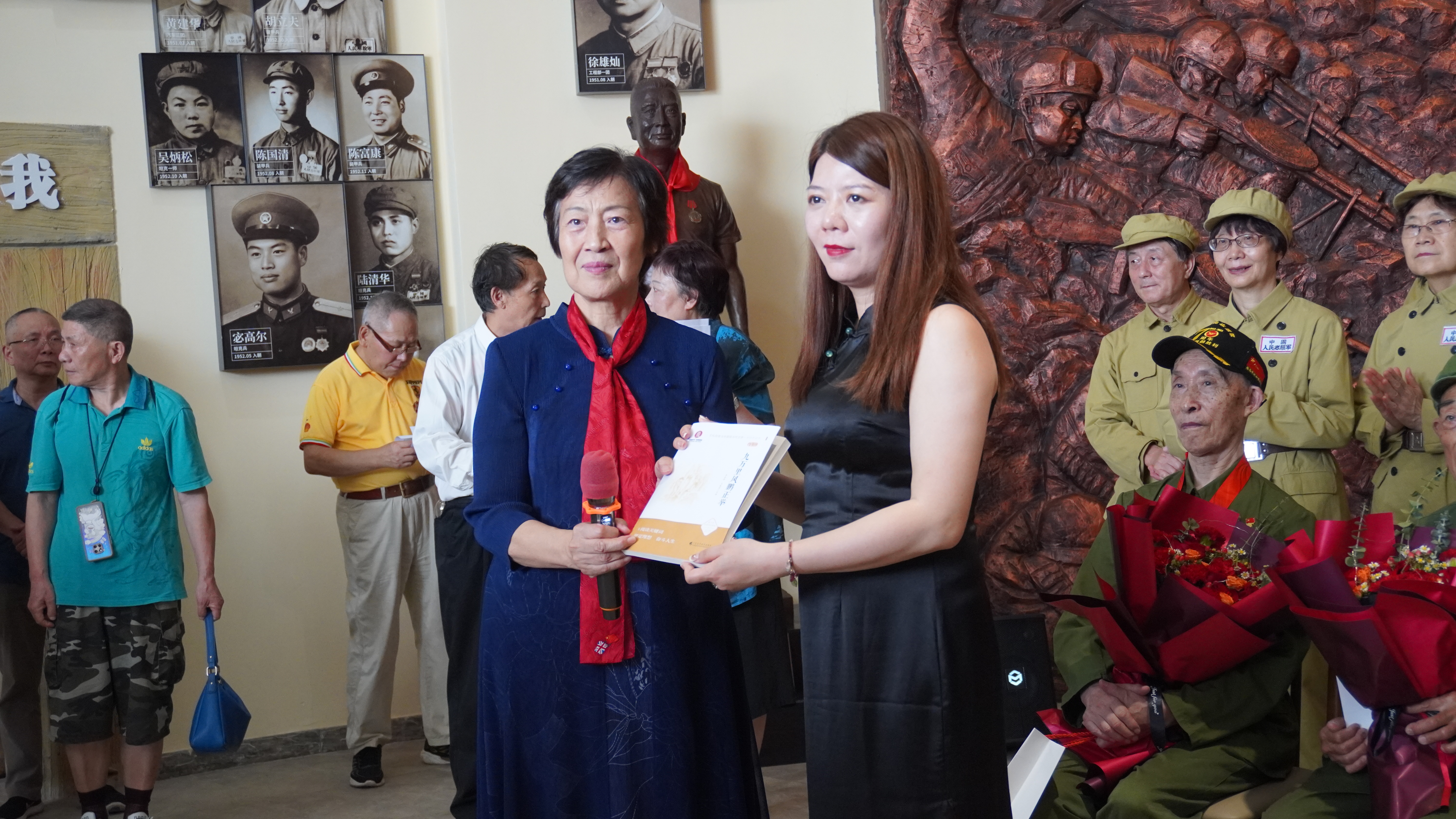 原志愿军一等功臣李庆财的义子、黑龙江生产建设兵团知青张传榜捐赠了李庆财在朝鲜战争中头颅内遗留的美国炮弹片及遗像。北大荒志愿军后代蒋鹏向志愿军老战士敬献了自家种植的蔬菜。 ![]() (张传榜) ![]() (老英雄李义财遗像) 志愿军文献馆杨馆长,和吕焕皋先生的女儿、现任抗美援朝文献馆总经理吕振欣向捐赠者颁发了证书。大家对此报以热烈的掌声。 吕振欣经理(右)接受捐赠 ![]() (主持人李丽珍) ![]() (老兵们观看演出) 精彩的节目饱含了演员们对志愿军的一片深情,寄托了大家对志愿军的无限缅怀,引起了观众的强烈共鸣。《中国人民志愿军战歌》《英雄赞歌》《祖国颂》等耳熟能详的反映抗美援朝时期的歌曲激发了大家的爱国情怀。 ![]() 本次纪念活动在全场大合唱《歌唱祖国》中结束。 ![]() ![]() ![]()