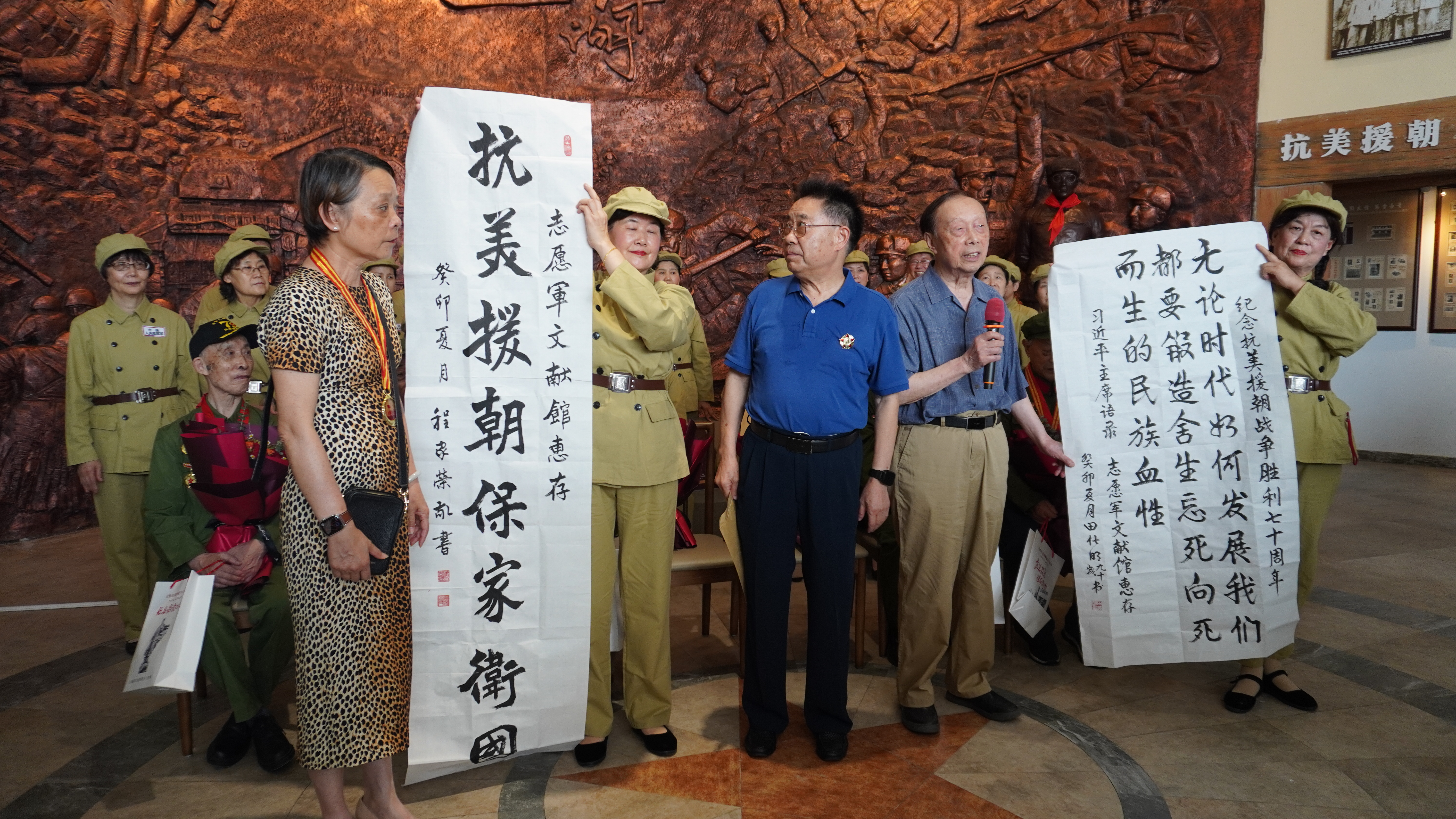 原二军大政治部主任田仕明将军,原东海舰队副政委、航空兵部队政委程家荣将军,二位老将军为志愿军文献馆赠送了抗美援朝保家卫国的墨宝,以表达了退伍军人对志愿军老前辈的崇高敬意。