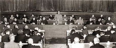 ◆1955年,毛泽东等党和国家领导人与全国工商联执行委员座谈私营工商业社会主义改造问题。