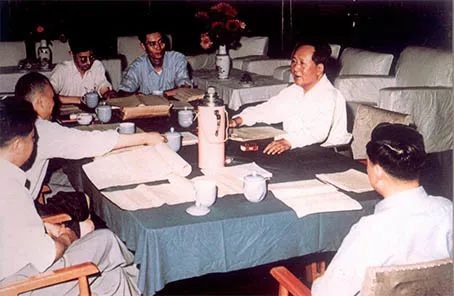 ◆1960年,毛泽东与有关同志研究《毛泽东选集》第四卷的编辑工作。