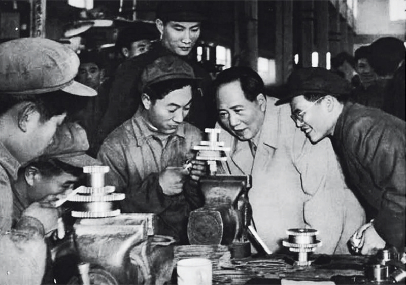 毛泽东同志作为中国现代化事业的开拓者,一生都在为中国这样一个古老的东方大国实现现代化而上下求索,建立了不朽功勋。图为1956年,毛泽东同志视察天津拖拉机厂(资料图片)。