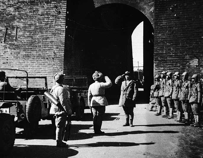 ·北平和平解放,傅作义部队官兵在朝阳门列队迎接解放军。