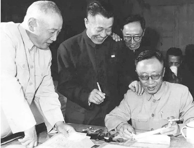 ·杜聿明(左二)与其他特赦人员在全国政协文史专员室。