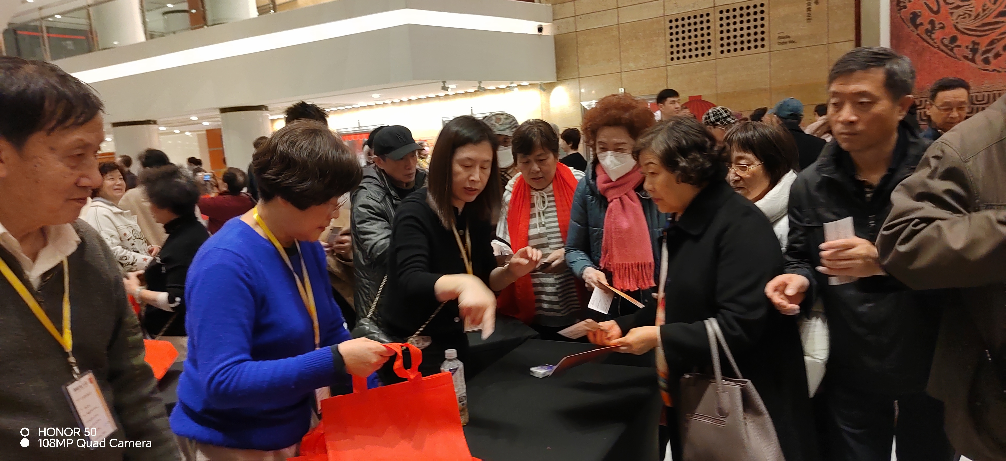 演出正式开始之前,颐若公司老辰光网工作人员在现场还给观众们赠送发放了由上海颐若文化传播有限公司董事长赵大砥先生亲自设计、特地制作的毛泽东同志诞辰130周年纪念徽章,受到观众们的赞扬和喜爱,纷纷对这位坐着轮椅、戴着吸氧器的八旬老者、颐若公司董事长,表示深深的敬意。