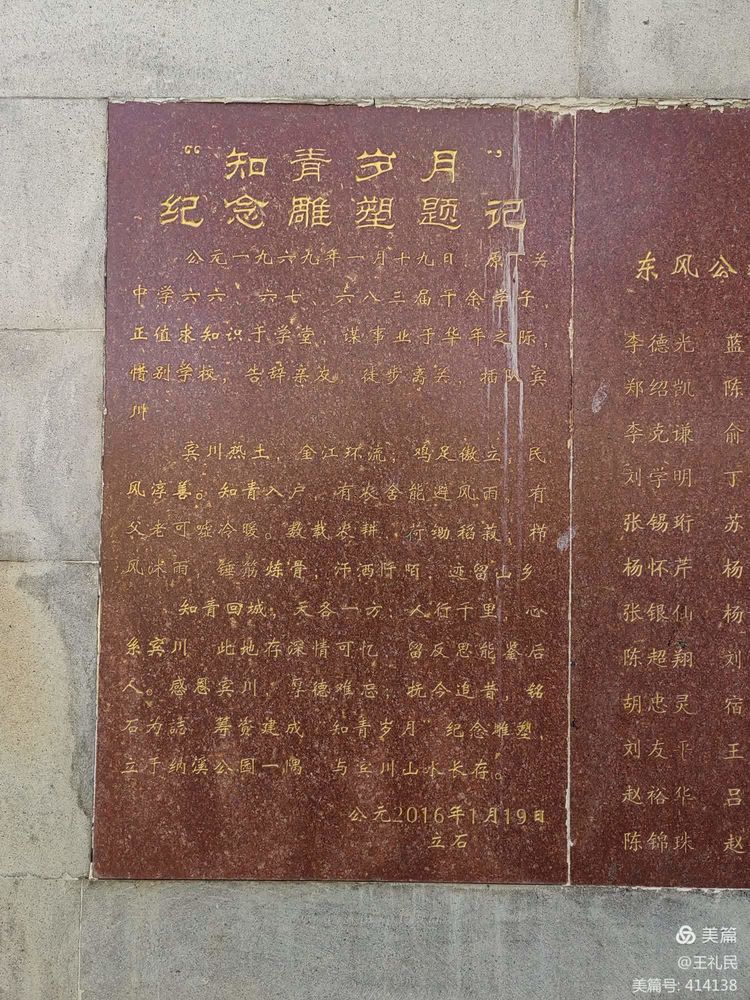 ![]() 地址:云南省大理州宾川县纳溪公园 宾川县“知青岁月”纪念墙雕塑揭幕仪式,于2016年1月19日,在县纳溪公园举行。 “知青岁月”纪念雕塑高 6.1米、宽 13.2米建在公园内的最高点,纳溪广场西面,由原大理下关中学老三届知青筹资50多万元兴建。 纳溪公园以石雕景观为特色,有白族“八角鼓、霸王鞭”,彝族“打歌”,傈僳族“牵吾牵”,苗族“跳花山”,拉祜族舞蹈中“打谷舞”,傣族“跳鼓舞”等,作品主要强调地域特征。新建的“知青岁月”纪念雕塑,为记忆、追溯知青岁月增添一景。 ![]() ![]() 公元一九六九年一月十九日,原下关中学六六、六七、一八三届干余学子正值求知识于学堂,谋事业于华年之际惜别学校,告辞亲友,徒步离关,插队宾川。 宾川热土,金江环流,鸡足傲立,民风淳善。知青入户,有农舍能避风雨,有父老可嘘冷暖。数载农耕,荷锄稻菽;栉风沭雨,锤筋炼骨,汗洒阡陌,迹留山乡。 知青回城,天各一方,人行千里,心系宾川”此地存深情可忆,留反思能鉴后人。感恩宾川、厚德难忘,抚今追昔,铭石为誌,筹资建成“知青岁月”纪念雕塑立于纳溪公园一隅,与宾川山水长存。 公元2016年1月19日 立石 ![]() ![]() ![]() ![]() (晓歌编辑) (责任编辑:晓歌) |