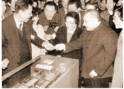 1992年2月18日晚,邓小平同志来到南京路市百一店,在文具柜台为小孙女购买了铅笔、橡皮。刊于1997年2月25日《解放日报》。
