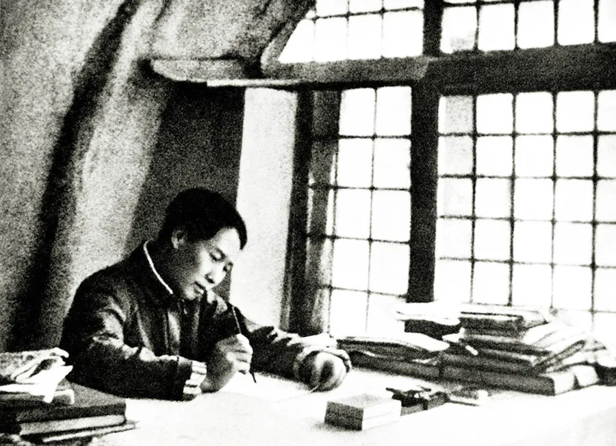 ◆1938年,毛泽东在延安窑洞撰写《论持久战》。