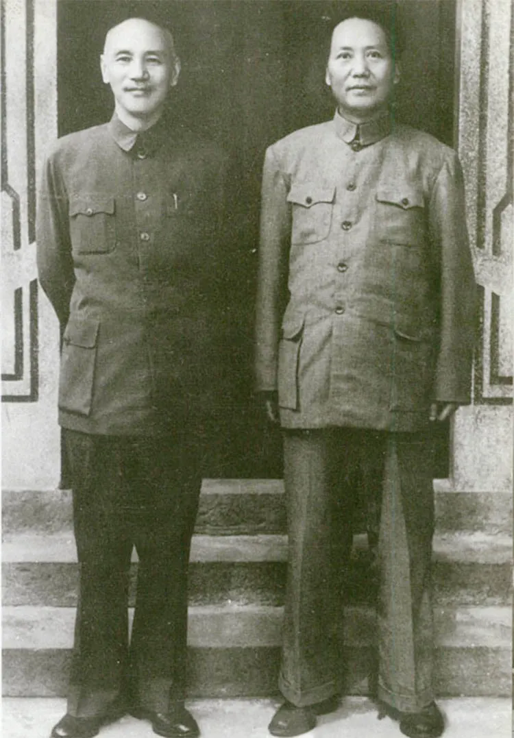 ◆1945年8月,毛泽东与蒋介石在重庆合影。