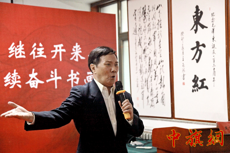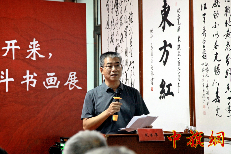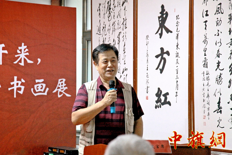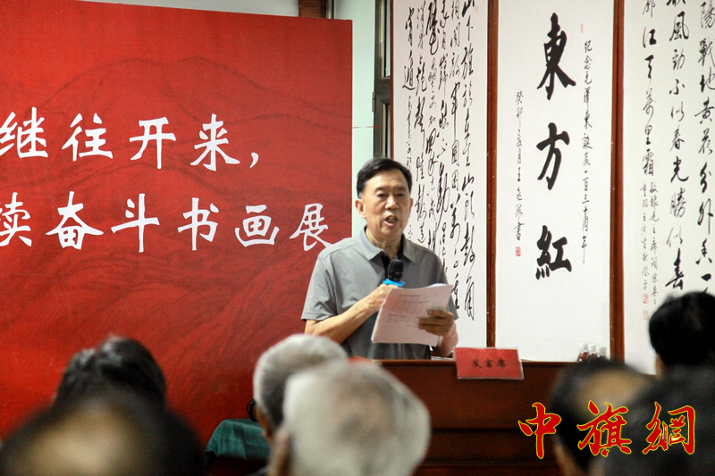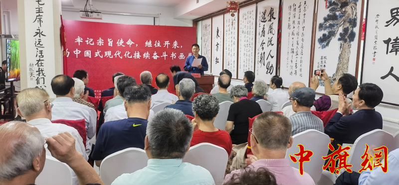 中旗网北京2024年9月10日电(靳建疆、刘世杰、张伊、黄江週) 9月8日《牢记宗旨使命,继往开来,为中国式现代化接续奋斗书画展》在京成功举办。范印华中将、王兆海中将、柴绍良中将、张宗银将军、孔繁顺将军、魏丕立将军、王贞奎将军、陈少华将军,毛主席生前机要秘书张玉凤同志,毛主席生前卫士、原8341部队一中队指导员孙振发同志,著名知青模范、全国劳模、天津宝坻区政协原主席侯隽同志,国家一级演员、原八一电影制片厂演员剧团团长、著名电影表演艺术家陶玉玲同志,中国书法家协会原党组书记、驻会副主席张飙同志,中央政策研究室综合局原局长张勤德同志,昆仑策研究院副院长兼秘书长王立华同志,昆仑策高级研究员、《世界社会主义研究》杂志特约研究员王志刚同志,原总政话剧团国家一级演员、著名表演艺术家刘纪宏同志,中国新闻出版书法家协会主席王云武同志,北京东方毅集团、北京新时代征程集团代表孟志强同志等各界代表出席了会议。 ![]()