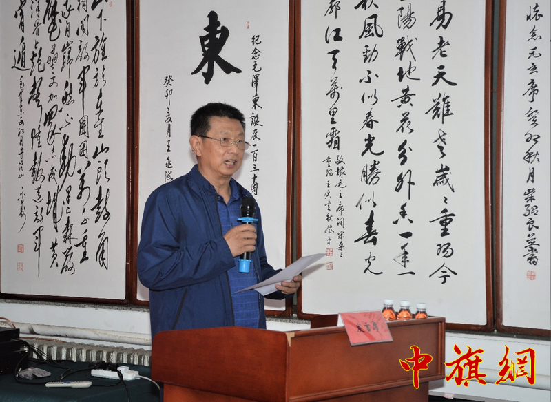 孟志强同志代表北京东方毅集团、北京新时代征程集团发言,他谈了自己对毛泽东思想以及中国式现代化的看法并介绍了东方毅集团。