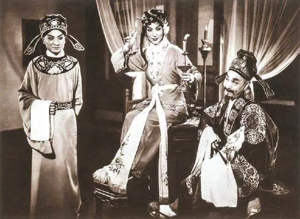 《尤三姐》电影剧照,童祥苓(左)饰贾琏,童芷苓(中)饰尤三姐,刘斌昆(右)饰贾珍