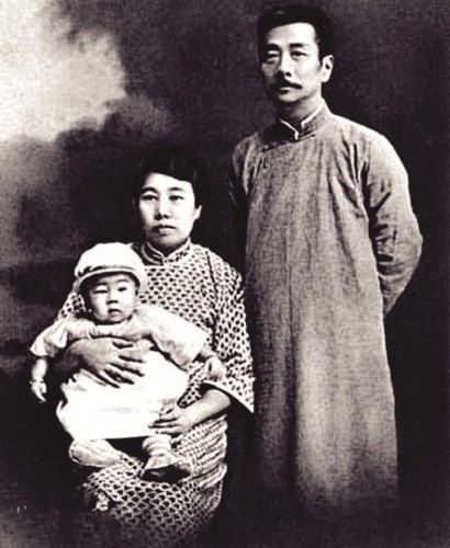 鲁迅与山本实彦(中)、内山完造(右)在“新月亭”