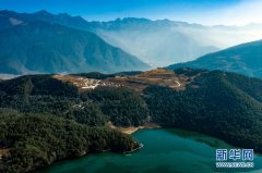 四川西南部群山间,有一汪形如元宝的清澈湖水彝海。58岁的彝族汉子沙马依姑自1986年起在这里担任管理员。他家世代生活在彝海村,是名望很高的毕摩家族。 这是位于四川省凉山彝族自治州冕宁县彝海村的彝海结盟红色旅游文化景区(上)与彝海(无人机照片,1月1...