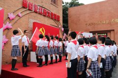 2019年5月29日,广州,中共三大会址纪念馆广场上,一学校在举行争做新时代好少年入队仪式。徐迎/摄 广州中共三大会址纪念馆广场响起了雄壮的国歌,正在上一年级的桑浩铭光荣加入中国少年先锋队。领誓人桑岭是桑浩铭的爸爸,广东省第一位驰援湖北战疫的医生,...
