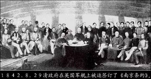 第一艘,来自于昔日的“日不落帝国”——公元1842年8月29日,一队清朝官员卑躬屈膝地登上停泊在南京江面的英国军舰“康华丽”号,在荷枪实弹的英国士兵环视下签署了中国近代史上第一份不平等条约——中英《南京条约》。