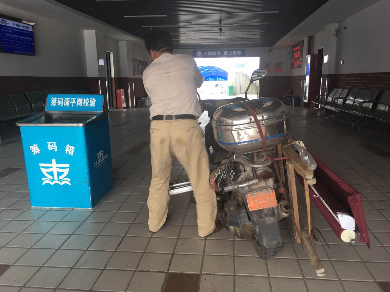 在丹东路轮渡站搭乘轮渡的大多是开电动车、摩托车、残疾车的务工人员。 黄尖尖 摄