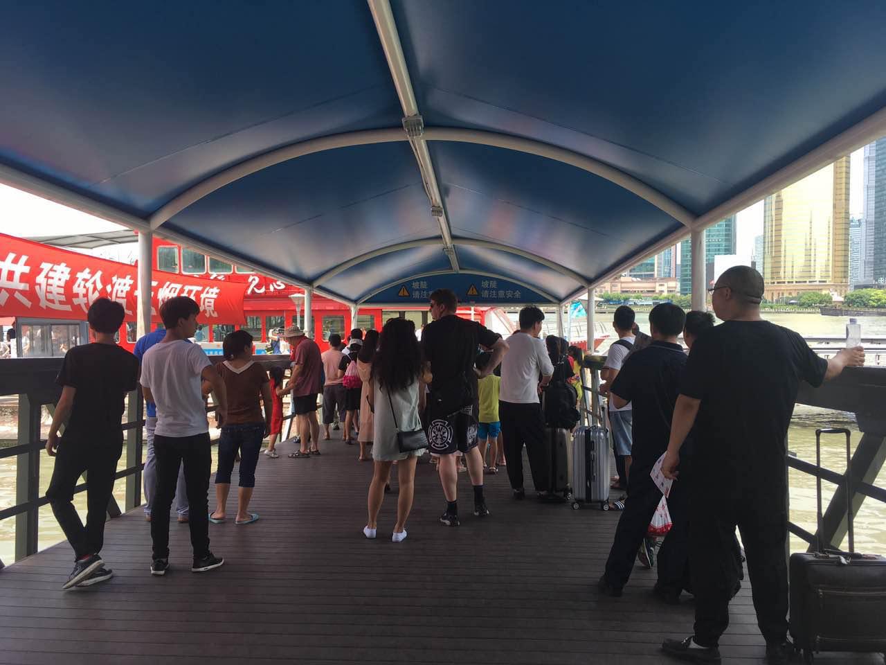虽然是工作日的中午,东金线轮渡码头上等候的人却不少,走近了发现,金发碧眼的外国人居多。往返于东昌路渡口与金陵东路之间的东金线轮渡,由于行经上海各地标性建筑,主要的客流来源就是游客。
