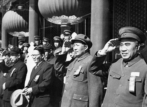 ![]() 中华人民共和国的成立,标志着中华民族由此开启了新的历史纪元。朱德是中华人民共和国的开国元勋,是党的第一代中央领导集体的重要成员,为新中国的建立和发展作出了杰出的贡献。 发布《向全国进军的命令》,颁布《中国人民解放军布告》 1949年4月21日,毛泽东和朱德发布《向全国进军的命令》,命令中国人民解放军“奋勇前进,坚决、彻底、干净、全部地歼灭中国境内一切敢于抵抗的国民党反动派,解放全国人民,保卫中国领土主权的独立与完整”。随即,人民解放军展开猛烈进击,所向披靡。23日,人民解放军解放了南京,彻底推翻了国民党政府在中国大陆的统治。25日,毛泽东、朱德联名颁布《中国人民解放军布告》,命令人民解放军奋勇前进,解放全国人民,实现全国的真正统一。布告还宣布约法八章,希望全体人民一律安居乐业,切勿轻信谣言,自相惊扰。这个布告随着中国人民解放军的胜利进军传遍全国,给刚刚获得解放的人们带来安宁和希望。 从农村转到城市,又是个大转变 为了顺利实现新形势下党的工作重心的战略转移,确定全国胜利后党在政治、经济、外交等方面的基本政策,1949年3月5日至13日,中共中央在西柏坡召开七届二中全会。在会上,毛泽东提出在全国胜利的局面下党的工作重心由乡村转移到城市,以生产建设为中心的问题,以及为适应这个转变而采取的基本政策。朱德出席了会议。6日,他在会上发言,同意毛泽东的报告。他说,过去从城市到农村,是个大转变。现在从农村转到城市,又是个大转变。我们的工作要适应这个大转变。他还语重心长地说:中国是个多灾多难的国家,要把这样的国家建设好,有许多事情要做。 七届二中全会一结束,朱德立刻到石家庄面粉厂、玻璃厂、卷烟厂等工厂向工人宣传全会精神,号召各厂党员干部坚决贯彻执行全会确定的方针政策,依靠工人阶级,努力恢复生产,管理好城市,为进行社会主义革命和建设作好准备。 为了迎接新中国的诞生,各行各业也在积极筹划,一系列人民团体的会议先后召开。从4月到8月,朱德先后出席了中国新民主主义青年团第一次全国代表大会、中华全国青年第一次代表大会、中华全国妇女第一次代表大会、中华全国第一次科学筹备会成立大会、中华全国铁路职工临时代表会议、中华全国文学艺术工作者代表大会、中国社会科学工作者代表会发起人会议、中苏友好协会发起人大会、全国工会工作会议、中华全国第一次教育工作者代表会议筹备会。他勉励各行各业认真学习马列主义、毛泽东思想,学习文化、科学、生产、军事知识,在中国共产党领导下,团结一致,克服困难,努力建设独立、自由、民主、统一、富强的新国家。 朱德对城市的生产建设和政策执行情况也极为重视。5月中旬,他参加在北平召开的财政经济委员会会议,讨论了上海、天津等地的生产、金融、税收和对外贸易等问题,以及各级财政经济组织机构的设置等问题。5月17日,他与毛泽东在接见华北职工代表会议的代表时指出:必须很好地掌握毛主席所指出的四面八方的政策,建立新的劳动态度,恢复与发展工业生产,并很好地与农业生产的发展相配合。6月初,朱德先后到秦皇岛市、唐山市和天津市视察,了解城市接管工作和生产恢复情况。他深入工厂、机关、学校,同各级各类人士座谈,勉励大家加强团结,密切合作,担当起建设新中国的光荣任务,把一切贡献给人民自己的国家,全心全意为人民服务。6月下旬,他逐个听取北平市关于电车公司、汽车公司、门头沟煤矿、清河制呢厂以及玻璃厂、制药厂、造币厂等厂矿情况的汇报。 7月1日,朱德参加北平各界庆贺中国共产党成立二十八周年大会。他兴奋地说:推翻国民党的反动统治,只是万里长征走完了第一步。更伟大、更艰巨、更复杂的任务还在前面。全国胜利以后,经济建设就成了压倒一切的中心任务。要特别认识经济建设的重要性,认真地、努力地学会做经济工作,把我国从落后的农业国变为先进的工业国。 中国的历史,从此将要进入一个新的时代 随着形势的发展,筹建新的人民政权的工作也在紧锣密鼓地开展着。 6月15日至19日,朱德出席了在北平召开的新政治协商会议筹备会第一次全体会议,并在开幕典礼上讲话。他代表中国人民解放军预祝会议成功,并满怀激情地说:中国的历史,从此将要进入一个新的时代,全国人民都感到万分地兴奋和愉快!中国人民解放军是中国民主运动的最忠实的支持者,现在它是新政治协商会议及即将建立的民主联合政府的最坚定不移的柱石。会议选出了以毛泽东为主任的筹备会常务委员会。朱德当选为新政协筹备会常务委员会委员。 经过3个多月的筹备,召开中国人民政治协商会议,建立新中国的时机已经成熟。9月21日至30日,中国人民政治协商会议第一届全体会议召开,朱德出席了会议。24日,他代表中国人民解放军代表团宣布:“我们一致拥护中国人民政治协商会议组织法草案、中华人民共和国中央人民政府组织法草案和中国人民政治协商会议共同纲领草案。中国人民解放军愿意坚决服从中国人民政治协商会议的共同纲领,并在中央人民政府领导之下,为完全实现这个纲领而奋斗。”30日,朱德当选为中华人民共和国中央人民政府委员会副主席,并致闭幕词。他说:“中国人民政治协商会议第一届会议的工作,已经胜利地完成