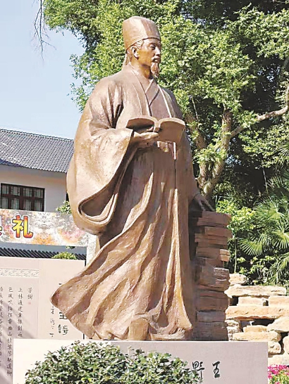 今天亭林镇新立的顾野王塑像。 陈爽 摄