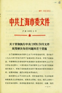 ![]() ![]() ![]() 那个文件批转了两个文件,其一为《全国知识青年上山下乡工作会议纪要》,第一部分“对成绩和问题的估计”,说“知识青年上山下乡,是毛主席、党中央的号召,毛主席的革命路线占主导地位,成绩是主要的”。第二部分是“统筹解决好知识青年的问题”,分为六条:第一,今后若干年内,还要继续动员知识青年上山下乡;第二,调整政策,逐步缩小上山下乡的范围;第三,城乡广开门路,妥善安排知识青年;第四,积极稳妥地解决好在农村的下乡知识青年的问题;第五,认真做好对下乡知识青年的培养教育工作;第六,切实加强保护下乡知识青年的工作。第三部分是“加强党对知青工作的领导”,要求“各级知青工作机构只能加强,不能削弱”,“县以上党委都应健全知青领导小组”。 其二为《国务院关于知识青年上山下乡若干问题的试行规定》,共40条,归纳为9个方面的问题:1、城镇中学毕业生的分配问题;2、上山下乡的安置形式问题;3、培养教育和保护下乡知识青年的问题;4、支援青年点的问题;5、国营农场的知识青年问题;6、下乡知识青年的选点问题;7、经费问题;8、口粮问题;9、其他问题。 上述内容清楚地表明高层并没有立即终结上山下乡的打算,相关的规定与做法实际上还是知青办等部门对1977年底开始出现的返城新动向而逐步形成的思路与对策,一年之后试图把各地各部门松动的政策规定在最高层次上统一起来。其中与已经此起彼伏的返城新动向密切相关的是:两年内基本解决1972年前下乡的插队知青,对农场知青则是今后一般不办理病退困退。 时过境迁之后,原国务院知青办负责人在《始末》一书中承认,上述决定“对安置在兵团、农场的知青过多地看到他们已身为国家职工、所处条件较为优越的一面,而对他们实际难处和坎坷经历考虑不周,且在当时有些问题和意图又难以说得清楚。因此,在中央决定的贯彻执行进程中,发生了麻烦和矛盾。”“早在1978年全国知青工作会议之前,个别农场已出现下乡知青罢工、请愿事件,但多数地区的农场知青还是稳定的。中共中央在批转全国知青工作会议文件中提出:‘要鼓励和支持他们安心农场工作,为办好农场贡献自己的力量’。‘今后一般不办理病退、困退,如果家庭和本人确有特殊困难,可以通过组织商调’。这样做,原是想稳住200多万农场知青,减轻城市就业压力。不想文件下达后,事与愿违,更加引起了农场知青的不安。许多知青后悔当初不该来农场。他们说,到农村插队,还可以通过招工回城,而招工与农场知青无缘,现在连病退、困退的路子都堵死了,回城更无希望了。有人编成顺口溜说:‘插队插队,越插越对;插场插场,越插越长;改变现状,只有上访’。于是罢工、请愿之风迅速在各地兴起。” 这就是如今常说的“大返城风潮”。 当年上述中央文件文件下达后,各地也发布了落实中央精神的文件出台。近些年有学者从档案馆查到过上海在1979年1月7日发布的市委文件,沪委(1979)5号,关于贯彻执行中央(1978)74号文件统筹解决知青问题的若干问题。其中就提出了上海的具体办法。 第一条就是“积极地、有步骤地解决好在外地插队的老知青问题”,明确而具体地提出:“中央规定,一九七二年以前下乡插队的老知青,一九七九、八〇两年内基本解决。我们争取提前解决。除由安置地区安排的以外,先批准六六、六七、六八、六九届四届插队知青回沪;再批准七〇届以后的插队知青回沪。……凡当地县知青办已经同意病退的插队知青,不再复查,由区、县知青办批准回沪。” 第二条是“有步骤地安排在郊县插队的知识青年”。规定:“一九七二年底以前下乡的老知青,一九七九年安排好;一九七二年以后下乡的知青,一九八〇年内基本安排好。” 第三条是“本市所属国营农场一定要办好”。 第四条是“对在外地国营农、林、牧场工作的知青”的规定,“对全国知青工作会议文件下达前,当地已经同意病退、困退,经过区知青办审核,符合条件的,仍可批准回沪。今后一般不搞病退、困退,对家庭和本人确有特殊困难的,可通过组织商调。” 第五条是关于顶替的政策规定。 显而易见的是,上述条文对插队知青返城是更加宽松了,申请病退的不再需要经过上海的医院复查!(估计这样的政策在执行过程中是不予公开宣布的,复查照常进行,但绝对是走过场,这样既可以显示政策的连续性,又不违背新的政策精神。)而对农场知青返城则是明显收紧了,明确宣布农场知青不再搞病退困退。 实事求是地肯定当年的确存在过“插队知青返城政策”这一历史事实,并不影响对云南知青返城风潮的评价。 在全国知青工作会议之前的一年里,各地各部门都有不同程度的政策变化,既有优先考虑解决插队知青的,也有把农场知青视为国家职工的。尽管当年的普通知青不可能知道高层政策的变化动向,但是民间传递着各地政策变动的消息;尽管当年的通讯手段很落后,但是事关前途的消息还是会不胫而走。在全国开展真理标准大讨论的大环境下,云南农场知青在1978年10月中旬首次发表的“公开信”,抓住上山下乡运动的要害本质开展尖锐的反思,确实是领风气之先的。不能把云南农场知青的“起事”简单地归因于“争名分”。平心而论,当年我风闻农场知青在人民广场等处“闹事”,还曾经从插队知青的遭遇出发,觉得农场知青应该对自