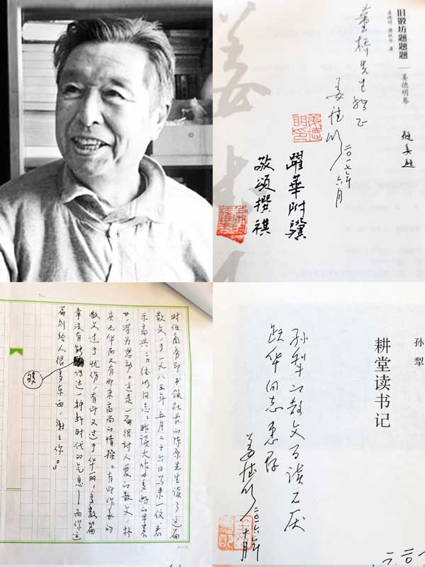 ![]() ![]() “他读书、淘书、藏书、品书、写书、出书,一生都遨游在书的海洋中。”在姜德明长子姜旗、书友萧跃华等人的动情讲述中,一位写书、爱书、出版书的书话大家、藏书名家的形象生动浮现。 北京日报社副社长萧跃华是姜德明生命最后10年间,往来最密切的书友之一。两人年纪相差30岁有余,意气相投,相交忘年。6月5日,萧跃华在接受本刊记者采访时,从办公室的书柜中将姜德明亲笔写下的信笺和题跋、亲手修改的文稿,以及他准备为姜老出版的散文、书话、书信等逐一找出,铺展在记者面前。件件实物铭记交往时光、见证书友情缘。 姜德明(1929年—2023年)历任《人民日报》文艺副刊编辑、人民日报出版社社长等职。上图为姜德明在《旧锻坊题题题·姜德明卷》扉页写下的题跋、萧跃华保存的姜德明手迹,以及姜德明送给萧跃华的《耕堂读书记》赠言和萧跃华的读书笔记。(本刊记者 武凤珠摄) 读书之师—— 一篇尘封的佚文 萧跃华最后一次与姜德明见面,在2021年1月25日。“我和姜旗一直有联系,2021年春节前夕,我对姜旗说,想去看看老先生。” 2021年,姜老的身体“已经不行了”。萧跃华记得,那一天,姜老用手指向客厅一架书柜下方的木门,似乎想要送给他们一些什么,大概是要把自己收藏的珍本转赠给爱书同好。 姜德明精神尚好时,送给萧跃华的孙犁散文集《耕堂读书记》,萧跃华一直珍藏在办公室的书柜里。“孙犁的散文百读不厌,跃华同志惠存。”萧跃华翻开书籍扉页,只见书中的赠言落款时间是2016年10月。 “如果没有姜先生赠我书籍,可能我不会系统阅读孙犁的作品、发现孙犁文字的漂亮。”萧跃华感念姜老对他读书的帮助,尤其是向他介绍了作家孙犁。 姜德明任职人民日报出版社社长以前,曾在人民日报文艺部担任过30多年的副刊编辑,见证了《人民日报》“大地”副刊品牌的发展壮大。那是20世纪五六十年代至七八十年代,巴金、孙犁、叶圣陶、茅盾、俞平伯当时的诸多文坛名家都同姜德明相交甚好。他们的往来书信,被姜德明一一整理,分类保存在文件夹中。 “姜先生的书房里有很多‘宝贝’。”在人民日报社家属区的姜宅书房“无名书斋”,姜德明聊至兴起,有时会翻出与文坛名家交往的信件、作家手稿和题跋等,展示给萧跃华看。有一次,他拿出一封孙犁写给他的信,信中夹着一篇从未发表过的文稿。 萧跃华那时虽未认真品读过孙犁的作品,但是凭借职业敏感,意识到这封书信的价值,当场提出拿到《北京晚报》发表。姜德明心有顾虑,一时未能许可。“我没看信,也没看文稿,就连文章的标题都没问。”直到2020年通读完《孙犁全集》《孙犁年谱》后,他回忆起这封书信,“想起来就十分后悔,最起码得把它扫描下来啊!” 萧跃华后来屡屡打电话给姜旗:“问问你爸爸,还记不记得放在哪里?”他向姜旗提供线索:“不是放在书桌抽屉里,就是放在书桌下边的柜子里。”姜旗认真翻找了两次,却未找到。 2023年5月26日姜老离世的消息传来,萧跃华专程带上一只大花篮,到姜宅吊唁。姜旗劝他,直接去参加遗体告别仪式即可,但是萧跃华还是想到“无名书斋”坐一坐。在这里,他数不清多少次与姜老对坐畅谈。 那封孙犁写给姜德明的书信,姜旗在处理父亲后事的过程中,一直替萧跃华留意着。6月3日,与姜老正式告别仅隔1天后,萧跃华忽然收到姜旗发来的信息:“老萧,信找到了。”萧跃华不久就收到复印件,却是姜老尚未完成的文稿《孙犁的佚稿》。 斯人虽逝,书信载情。那封佚失的孙犁信件,萧跃华再三叮嘱姜旗,继续留心,他仍在期待着。 题跋之友—— 一段难忘的情谊 相识相交近10年,萧跃华将姜德明视为如孙伏园、鲁迅、傅斯年、胡适一般值得景仰的前辈。得知记者要采写一篇缅怀文章,他第一时间发来几幅图片、几篇文稿。其中一幅《旧锻坊题题题姜德明卷》书封,见证着他与姜老缘分的肇始、情谊的深化。 2014年,萧跃华正在为《文汇读书周报》“邵书珍藏录”专栏写文章,推介作家邵燕祥的著作。其中一部著作《绿灯小集》提及了姜德明。经由邵燕祥介绍,萧跃华与姜德明取得联系,首次造访他的家中。“他是下楼来接我的。”姜宅在二楼,姜德明那年已经85岁高龄。 情缘始于此。萧跃华喜爱收藏知名文人学者的签名题跋书。与姜德明相识后,他用1年时间,搜集到他创作的全部作品和编辑的部分著作,一趟趟跑去姜宅,请姜老题跋。“他每本书都题了。”萧跃华也为姜老所写、所编的这些著作,一一写了书话。姜德明写题跋,不是提笔一挥而就,往往要细心推敲、字斟句酌。萧跃华了解姜老的郑重严谨。每逢请姜老题跋,他都将自己刚淘的著作、新写的短文一并留下,留出充足时间供姜老思索审定。常来常往之间,友谊筑实走深。 萧跃华看重与老辈学人的往来情谊。2017年,他将姜德明、朱正、钟叔河、邵燕祥4位先生的编著作品题跋,同自己撰写的书话一道,编成《旧锻坊题题题》丛书出版。在丛书“姜德明卷”后记中,他细笔写下初次到访姜宅时姜德明的热情招待和他看到的场景:姜老正在阅读他的文章,谦虚地使用了“拜读”的字眼;书桌上干干净净,书柜里整整齐齐…… 姜德明高寿,享年94岁,一生历经动荡、归于圆满。萧跃华却提及他两个未竟的心愿。姜老毕生藏书、阅读、研究,偏爱民国时期新文学。他曾向萧跃华谈起,在新中国