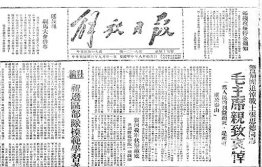 ◆1944年9月8日,中央警备团举行张思德追悼大会,毛泽东出席了追悼会并发表《为人民服务》的讲话。这是当时《解放日报》的相关报道。