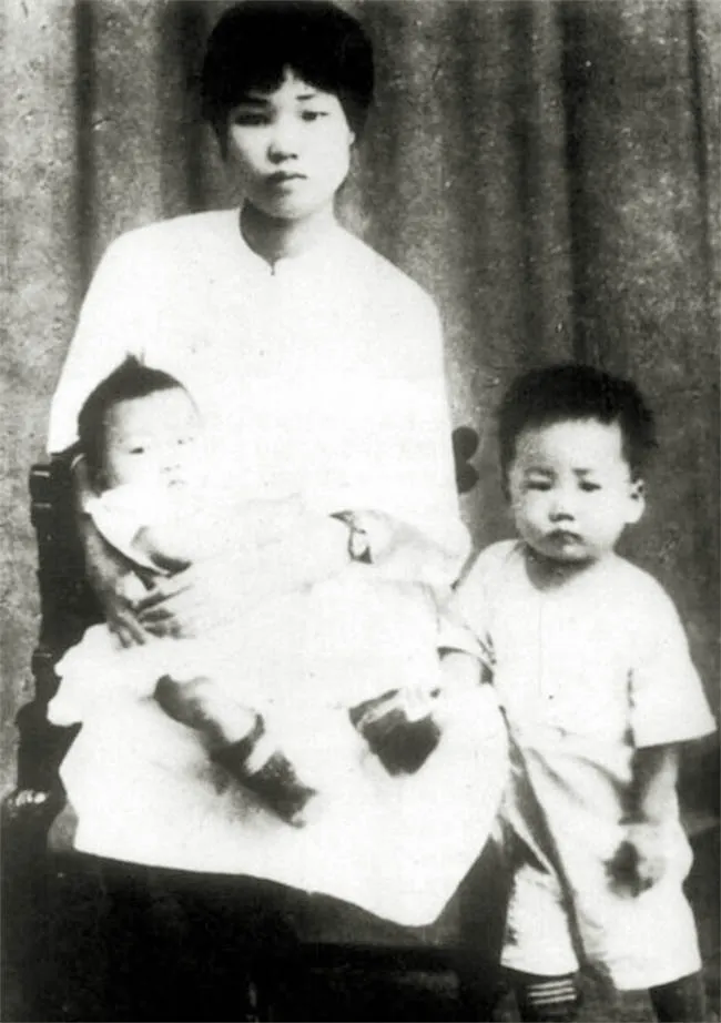 ◆杨开慧、毛岸英、毛岸青母子合影。