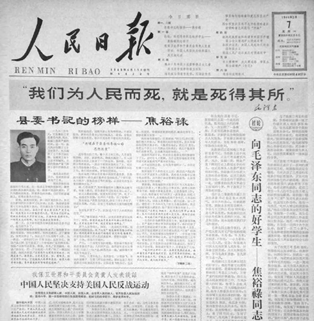 ◆1966 年2 月7 日,《人民日报》刊登的穆青等人所写的《县委书记的榜样——焦裕禄》。