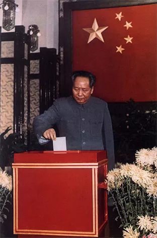 ◆1953年3月1日,《中华人民共和国人民代表大会及地方各级人民代表大会选举法》公布。图为1953年12月8日,毛泽东在北京市中南海选区参加基层投票。