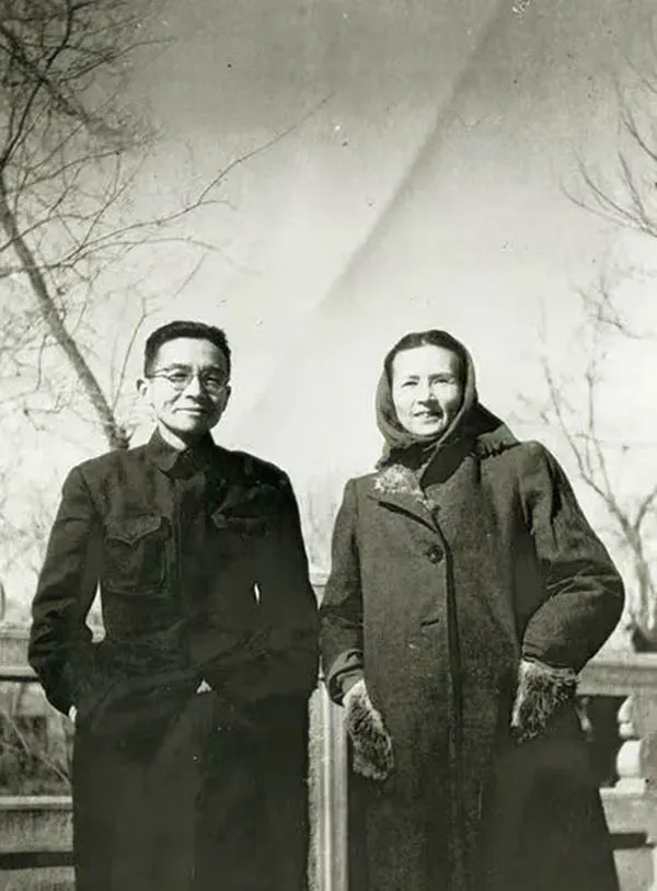 ◆1950年代初,梁思成、林徽因在清华园合影。