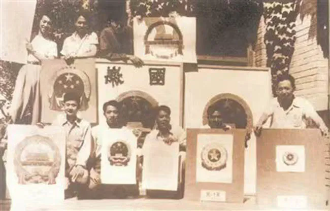 由于国旗、国徽和国歌有着特殊的象征意义与艺术要求,还必须要有对此特殊性有着精深理解的艺术大家和学术大家参加评选。于是第六小组在7月4日首次会上决定,“聘请专家为委员,并委托郭沫若、沈雁冰二人提出初步名单”。(中央档案馆编:《中华人民共和国国旗国徽国歌档案》上卷,中国文史出版社2014年1月版,第15页)会后郭沫若、沈雁冰二人立即拟定了名单,国旗国徽专家共18人,其中包括梁思成和林徽因,国歌专家16人。8月5日,第六小组第二次会议,商量决定从中聘请徐悲鸿、梁思成、艾青三人为国旗、国徽图案初选委员会顾问;马思聪、贺绿汀、吕骥、姚锦新四人为国歌词谱初选委员会顾问。预定8月18日至20日为选稿时期,22日举行国旗、国徽初选委员会会议,23日举行国歌词谱初选委员会会议,24日开该组全体会议,并请顾问参加。 ![]()