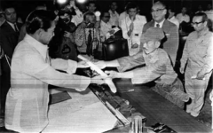 【导读】1945年日本无条件投降,朱启平作为战地记者被派往日本现场采访。9月2日,他目睹了中、英、法代表在东京湾美国军舰密苏里号上接受日本政府投降仪式。其现场报道《落日》次日在《大公报》上发表,轰动一时,被公认为状元之作,后来还被列为大学新闻典...