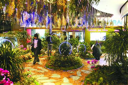 新年伊始,淮海路一商家在店堂内打造“梦幻花园”,吸引消费者。
