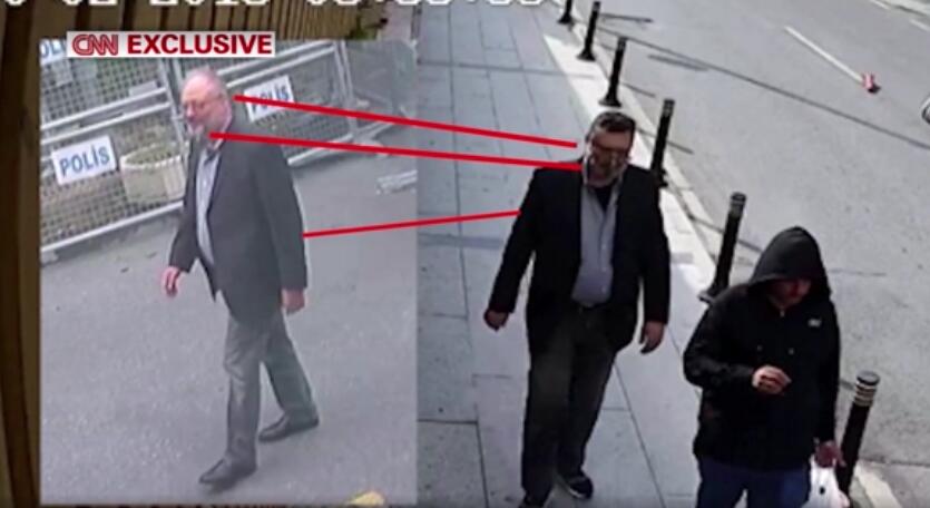 视频截图:沙特王储谈卡舒吉之死 《纽约时报》报道称,土耳其官员认为,在卡舒吉进入领事馆后不久,“15人小组”就杀死了他,然后用一根骨锯对他的尸体进行了肢解,以方便处理。 土耳其方面向媒体透露了刺杀小组成员的姓名,以及他们抵达机场并在伊斯坦布尔四处走动的照片。此外,土方还释出一段重要视频,显示卡舒吉死后不久,一名“替身”穿着他的衣服从领事馆走出并在伊斯坦布尔游荡,试图留下一段监控录像,表明卡舒吉还活着。