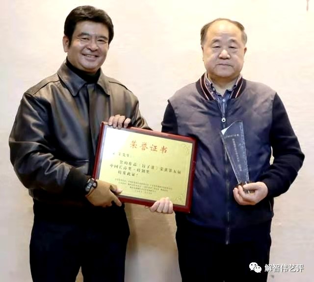 ![]() 2020年11月15日,有消息称:第五届中国长诗奖日前举行了颁奖仪式。中国作家协会副主席、诺贝尔文学奖获得者、著名作家莫言发表在2019年12期《北京文学》上的《饺子歌》斩获特别奖。 舆论一片哗然。 莫言,原名管谟业,1955年2月17日出生于山东省高密市东北乡文化发展区大栏平安村,中国作家协会副主席、2012年诺贝尔文学奖获得者。 许多年前,一首《爱与哀愁》的歌曲,唱红了街头巷尾,一种忧怨的伤感在无奈中跑调,深藏内心的爱跑得那么远,红尘中很难再觅踪迹。 许多年前,中国诗歌成了追梦人的圣地,朦胧的诗意千磨百折地穿越了一代人的心巷,让很多人伸出“食指”,选择了《相信未来》。 许多年过后,未来己来,诗的星空黯然失色,妖风四起,中国诗歌进入群魔乱舞的时代,“不蒸馒头争口气”的顺口溜竟然获得中国诗歌最高奖,真是“卖了麦子买蒸笼”,结果,这口气让中国诗歌传统“断气”,把中国诗歌读者“气”死。 更“气”人的是,莫言凭借非诗作品《饺子歌》竟然斩获第五届中国长诗奖特别奖。 颁奖仪式上,我们看到的不是惊喜,却是一种悲哀。 01 莫言写诗,娱乐了诗歌也羞辱了自己 中国诗歌饺子的馅很多,合不合胃口是编者和读者的事。 在谈到《饺子歌》的创作时,莫言说他在北师大校园散步,隐约听到前边有一对情侣在议论他,他就有了点点小灵感,回去想写首打油诗之类的玩意儿,但没想到越写越长,越写越热闹,乌鸦来了,猫来了,鼠来了,夜游神也来了。这到底是诗?是剧?还是小说?为了发表起来容易些,他就将其命名为诗体小说。 于是,《饺子歌》有了这样的开头—— 一轮明月照校园, 两个学生在正前。 与我相距十米远, 高声大嗓把话谈。 以老莫夫人的秀发发誓,《饺子歌》根本就不是诗,就只是几根头发长出来的长长短短的句子。 “老莫”说: 饺子啊饺子, 世界上最古老的美食。 就是为了你, 我才立大志。 废寝忘食写小说, 呕心沥血编故事。 饺子啊饺子, 你优美流畅的线条, 你光滑洁白的表皮, 你五花八门的包容, 你千奇百怪的滋味, 你赴汤蹈火的英勇, 你无私奉献的品德, 每当我想起你的名字, 我就感到生活充满希望。 中国诗歌是中国文化核心的核心,中国传统诗歌是值得每个中国人跪着仰读的精神文本。 莫言的《饺子歌》,一地鸡毛,纯属诗言垃圾,曾被网友群嘲。如此不堪的作品,直接玷污了诗歌,也羞辱了中国读者的智商。 02 莫言写的叫长诗,你写的会是长屎 上个世纪80年代的文青几乎不再碰诗歌,当代诗歌成了写作群体的低智游戏,读者大多都挥挥衣袖,作别了诗意浪漫的云彩。 《饺子诗》胡扯成诗,老莫长着一张汪精卫的睑,却背叛不了自己表情,猫王与鼠皇大战校园的江湖,猫向老鼠全面投降,乌鸦派出了维和部队,莫言代表乌鸦获得诺贝尔和平奖,夜游神用一泡热尿,煮熟了最性感的饺子……。 整首诗既不幽默,也不怪诞,神经病一样的呓语,只想吃上饺子。 栓在食物链上的诗句,成了喂饱野猫的猫粮,诗歌门槛很低,几声动了春情的猫叫,诗。 诗歌几乎成了没有人看的文学样式,估计将近8000字的伪长诗更没人读,为什么《北京文学》不惜页码热推《饺子诗》呢? 这是一个充满物欲和追逐名利的时代,文学精神已基本缺失,很多编辑也失去了应有的职业操守。 《北京文学》编辑、《饺子歌》责编王童说,莫言自己很看重《饺子歌》的发表。 于是,《北京文学》也给莫言端上了一盘热气腾腾的饺子,《北京文学》编辑评论写道:一向注重文本创新的诺贝尔文学奖得主,著名作家莫言,别出心裁推出在当代文坛罕见的诗体小说,他以天马行空的奇思妙想和简约灵动的文字,为我们描绘出一幅幅亦虚亦实,妙趣横生的现实图景…… 莫言的《饺子诗》能登堂入室,公开发表在纸媒上,如果刊物不是趁名人热度,就只能说明编辑缺少专业眼光。 社会的有限资源向名人倾斜,造成了社会的不公。吴焕唐撰文说,我认为这样的饺子体,如果是非著名人士创作,会死的很惨。如此饺子体,因为是莫言写的,所以它叫长诗,你写的,会是长屎。 回想张况在给莫言的授奖词里说的一句话,“毫无疑问,《北京文学》全诗刊载《饺子歌》,需要过人的胆识。”这句话真让人寻味。 03、颁奖乱象,文化腐败的活报剧 新华网曾经报道,文艺评奖,乱象丛生。 一些文艺奖项搞暗箱操作、权钱交易、已缺失公信力,沦为了“文化腐败”重灾区。 最权威的诗歌大奖也屡报丑闻,见诸报端,严重污损了诗歌之名,人情奖、政绩奖、关系奖败坏了文艺土壤和社会空气。 鲁迅文学奖屡曝黑幕。四川诗人周啸天获得该奖的诗歌也因水准较低受到网民“炮轰”,被指为鲁奖“丑闻”。 作家方方多次通过微博批评鲁迅文学奖暗箱操作,结果官司缠身。 单就诗歌奖而言,从政府到民间几乎每天都有评奖活动。有人骗钱设奖,有人花钱跑奖。中国含金量最低的就是各式各样的诗歌奖。 最笑话的是一个艾青杯诗歌奖,现场去了400人领奖。 中国长诗诗歌奖算是什么奖,我不清楚。一个由中国作协诗歌委员会挂名指导,一个区作协承办的奖,地方政府拨了多少钱,拉赞助又拉了多少钱,我也不清楚,场面上有中国作家协会诗歌委员会主任叶延滨站台,莫言上台领奖,我也不知道这有多大公信力和权威性。 我只知道,把中国长诗奖特别奖颁给莫言的这类非诗作品就有失公允,这种打脸式的评奖不仅不能给