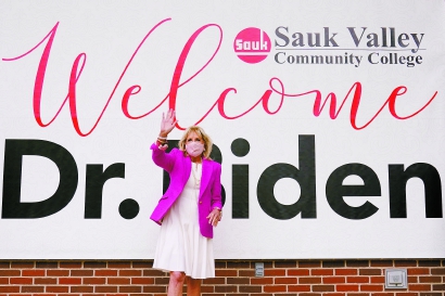 4月19日,美国伊利诺伊州迪克森市,吉尔·拜登到访索克谷社区学院。 视觉中国