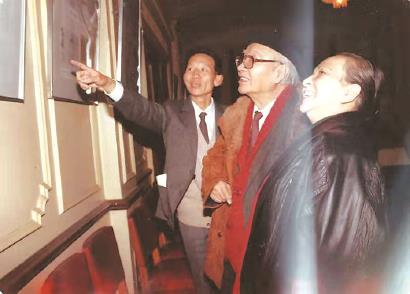 1986年12月6日,郁云在西厅向刘海粟夫妇介绍父亲郁达夫事迹